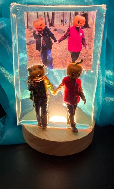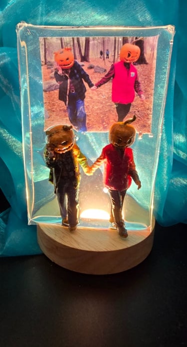 We are able to take a photograph or image, create a 3D model, paint it and encase it in resin, all to your specifications!